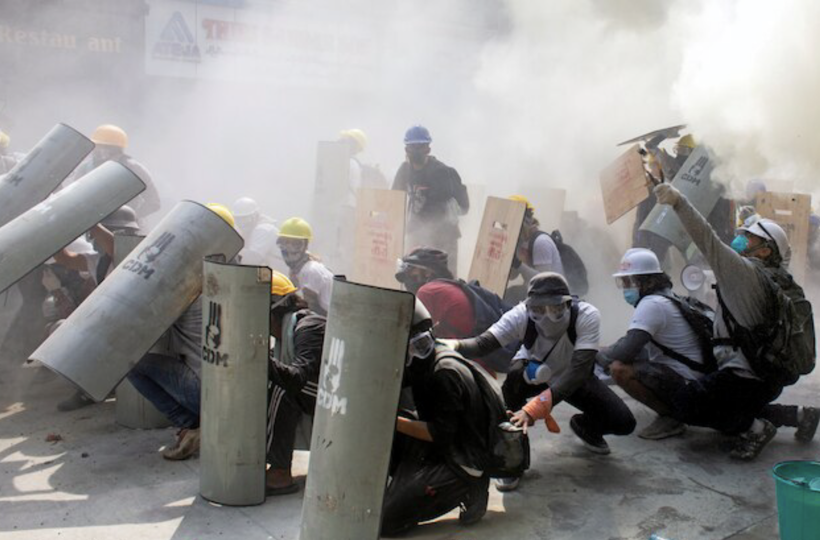 Testigos de las sangrientas protestas del domingo dicen que la policía utilizó gas lacrimógeno, balas de goma, cañones de agua y, en algunos casos, munición real en la ciudad más grande del país, Rangún. Según The Associated Press, se publicaron en las redes sociales fotos de casquillos de munición real. Los videos de los medios muestran a los manifestantes arrastrando a algunos de los heridos lejos de las protestas, dejando manchas de sangre en el pavimento.
