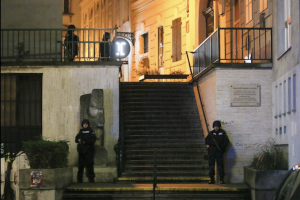 Agentes de policía hacen guardia en las escaleras llamadas ‘Theodor Herzl Stiege’