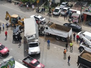 Santiago.- El 911 informó que brinda asistencia a un accidente de tránsito entre dos camiones, una jeepeta y un autobús de pasajeros, en un hecho ocurrido en el sector La Delgada, provincia Santiago.