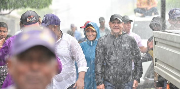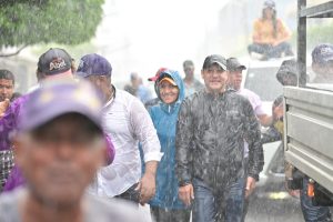 Martínez bajó de su vehículo y se unió a la gente del pueblo, abrazado bajo un torrencial aguacero, asegurando que “la lluvia es una bendición que viene a sellar la esperanza de un futuro seguro para nuestro país”.