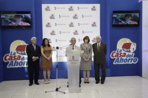 El notario público Luis Veras Lozano, en el momento en que da lectura a las bases de la promoción La Casa del Ahorro 2018-2019.