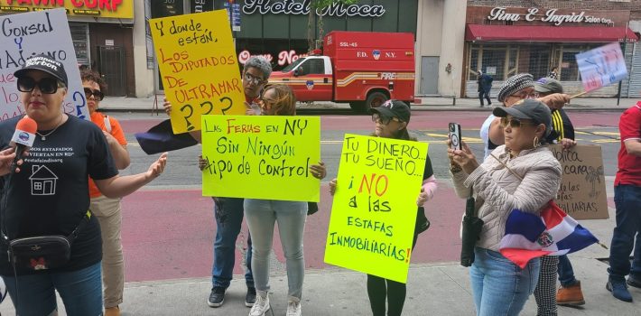 NUEVA YORK.- Una veintena de dominicanos pertenecientes al movimiento social «Acción Rápida» en esta ciudad, que dirige la líder comunitaria Dayanara Borbón, realizaron un piquete la mañana de este domingo en el lugar donde por tres días se efectuó la «Feria Inmobiliaria-Dominican House Fest.»