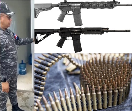 Allí se ocuparon dos fusiles calibre 5.56mm, uno marca Ruger con serie número 185130531 y otra marca Adams ARMS, modelo AA-15, con serie número AA0008945, ambos de color negro y con sus respectivos cargadores.