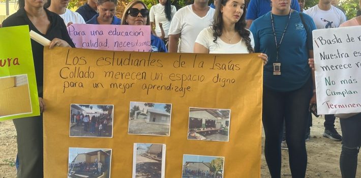 “Exigimos que se apliquen los mecanismos de la Ley 340-06 sobre Compras y Contrataciones Públicas, para que se asignen estos proyectos a compañías que realmente cumplan con los plazos y compromisos establecidos. De no ser así, continuaremos con nuestra lucha, porque con la lucha del pueblo… ¡el pueblo no se cansa!”, concluyó Núñez, acompañado de decenas de docentes y comunitarios.