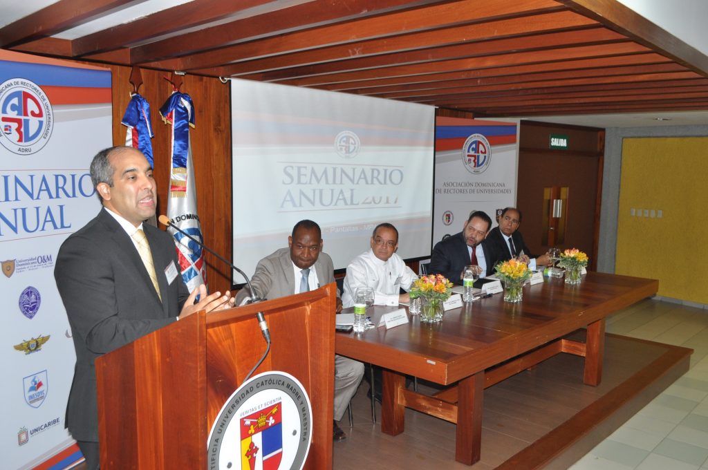 Santiago, RD,-La Asociación Dominicana de Rectores Universidades Dominicanas (ADRU) y la Pontificia Universidad Católica Madre y Maestra (PUCMM), dieron apertura al seminario “Acceso a Contenidos Digitales del Sistema Dominicano de Educación Superior Ciencias y Tecnología”, con el fin de discutir el reto que tienen las universidades del país, de adecuar sus contenidos y metodologías pedagógicas a un contexto de educación abierta y digital.