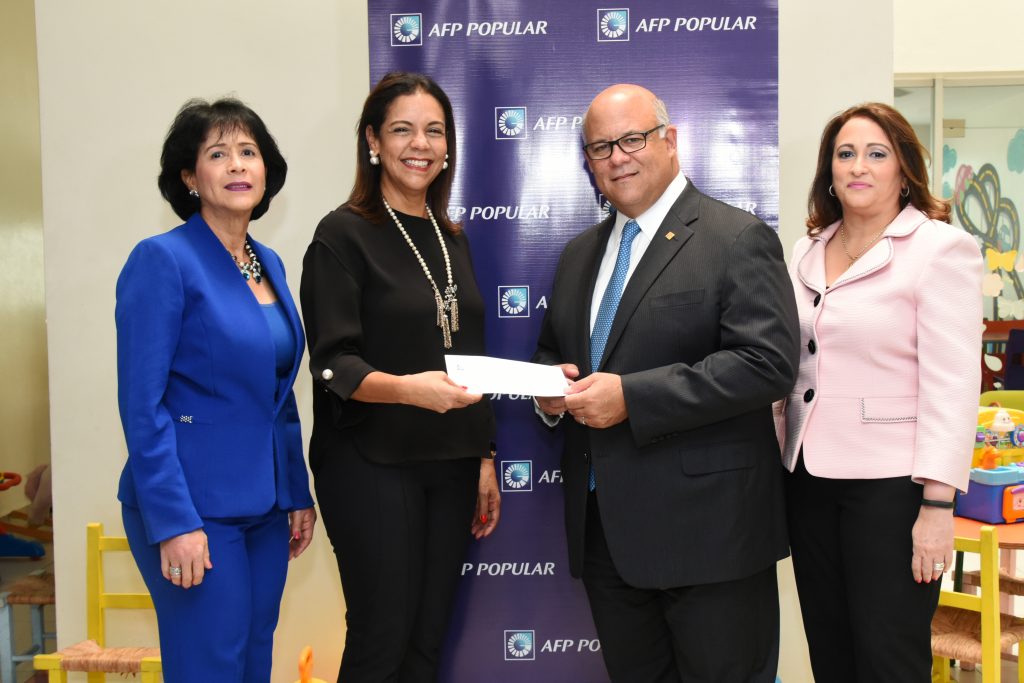 Santo Domingo, D.N.- La Administradora de Fondos de Pensiones Popular (AFP Popular) realizó aportes por valor de RD$750,000 para la mejora de la calidad de vida de los niños con cáncer y los envejecientes que reciben atenciones a través de la Fundación Amigos contra el Cáncer Infantil (FACCI) y en los hogares de ancianos pertenecientes al Consejo Nacional de la Persona Envejeciente (CONAPE), respectivamente.