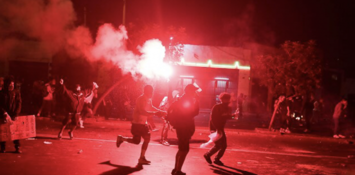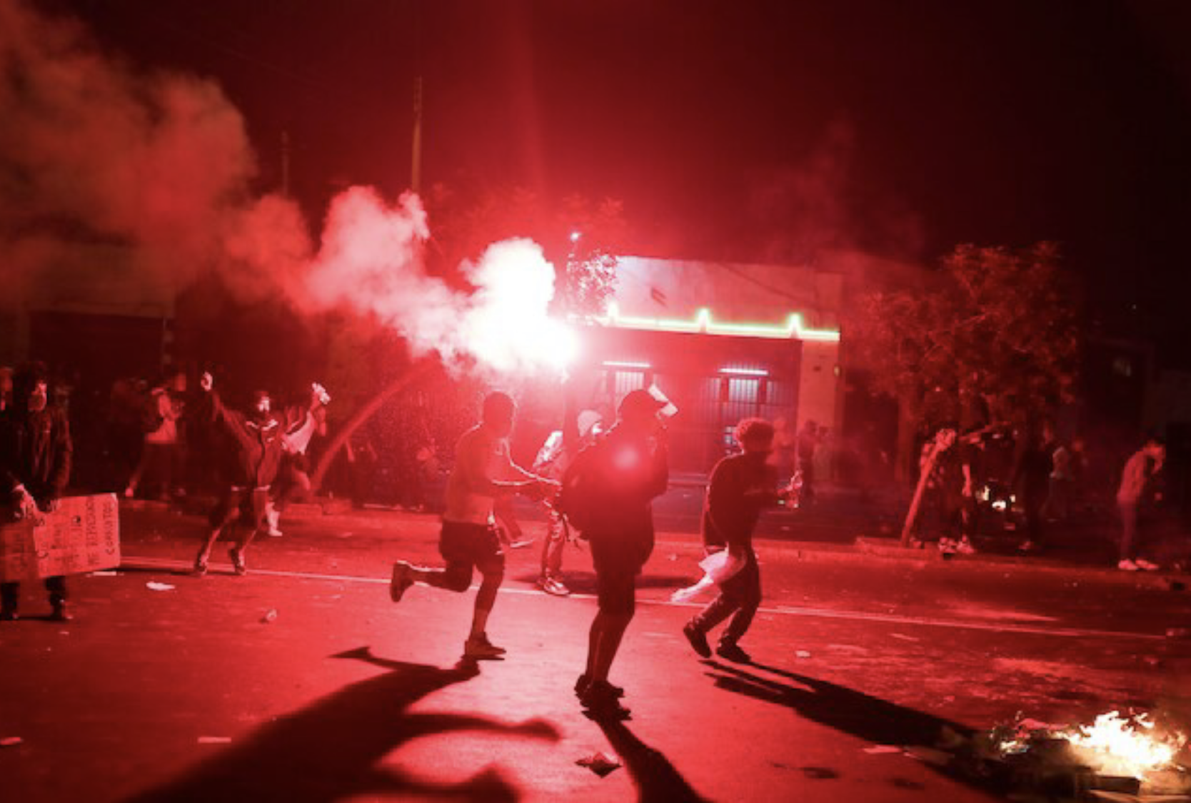 Imágenes de televisión mostraron el cruce de gases lacrimógenos arrojados por la policía y de piedras y bombardas lanzadas por los manifestantes. La protesta dejó cajeros automáticos de bancos y vitrinas de negocios destrozados.