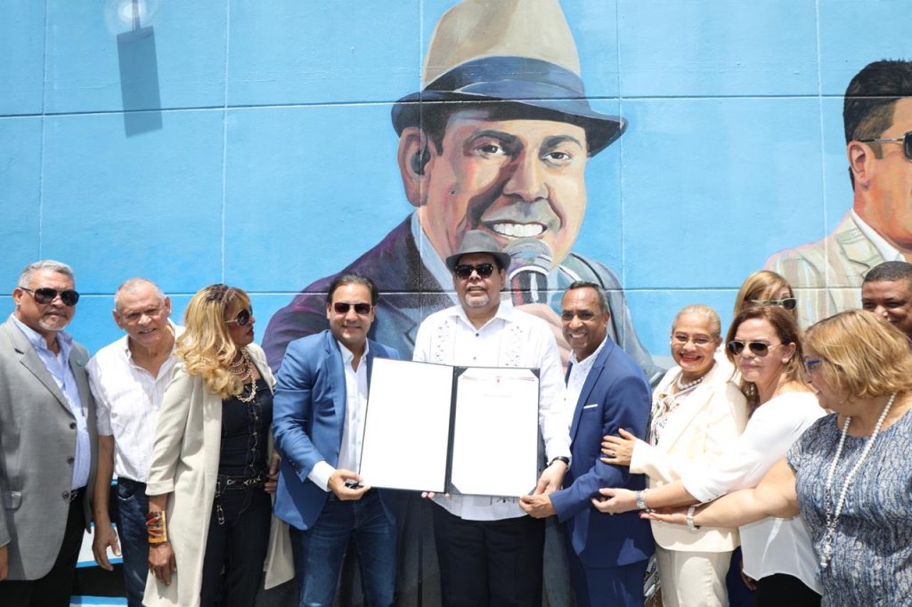 Santiago.-El alcalde Abel Martínez, dejó inaugurado este viernes en esta ciudad un primer mural en honor al merengue, declarado por la UNESCO, como patrimonio Inmaterial de la humanidad, ante la presencia de los merengueros, Fernando Villalona, Ramón Orlando, Eddy Herrera y Sergio Vargas.