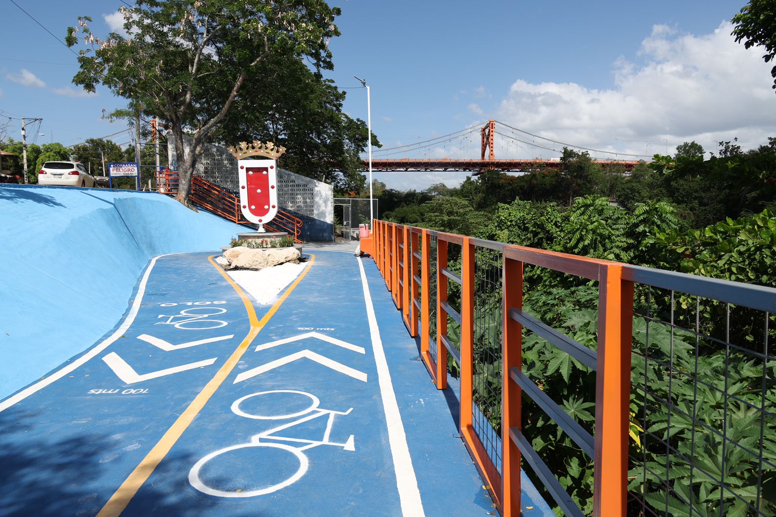 La vistosa obra cuenta con una rampa para el pase de los ciclistas, una especie de un trillo desde la ciclovía del parque lineal, pasando por debajo del puente de La Otra Banda, dicha rampa cuenta con protección de pilotillos, lavado y pintura en todo el puente de La Otra Banda.