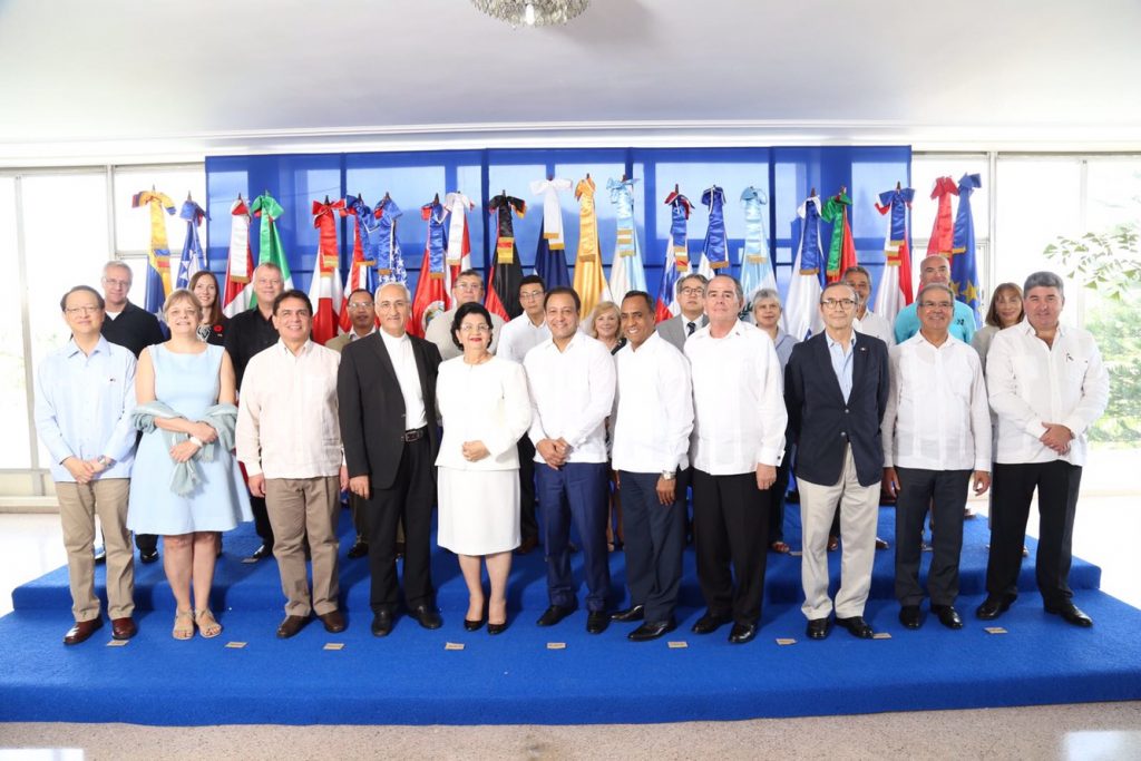 Por la Republica China de Taiwán, su Embajador, Valentino Ji Zen Tang y el honorable Cónsul Oscar Liang, Zacaria El Goumiri, del Reino de Marruecos y el Ministro Consejero Nour Eddine Halhoul, María Cristina Castro de Argentina, Gianluca Gripa, de la Unión Europea, Urs Robert Schneider, Embajador de Suiza y Yolanda Araceli Azuara Ferreiro, Representante de la Secretaria General de Los Estados Americanos, en Republica Dominicana.