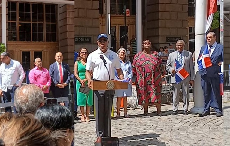 NUEVA YORK.- En un acto en el que una vez más el alcalde Eric Adams resaltó la laboriosidad y contribuciones de la comunidad dominicana en esta ciudad, este lunes fue izada la bandera quisqueyana en el distrito económico de Manhattan, específicamente en la plaza de Bowling Green.