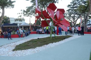 La vice alcaldesa Leonela Massiel Espinal, regidores y funcionarios de la exitosa gestión municipal de Abel Martínez, encabezó el acto de inauguración de la bella obra ante una concurrencia masiva de los residentes en esa comunidad, que celebró con desbordante entusiasmo la gran inversión por parte de la alcaldía local.En nombre de los comunitarios de Las Cayenas, habló la señora Violeta Ramírez de Rosario, agradeció al alcalde Abel Martínez, de manera muy sincera la construcción del nuevo parque, ya que es una obra muy importante para el esparcimiento de los residentes en el sector.