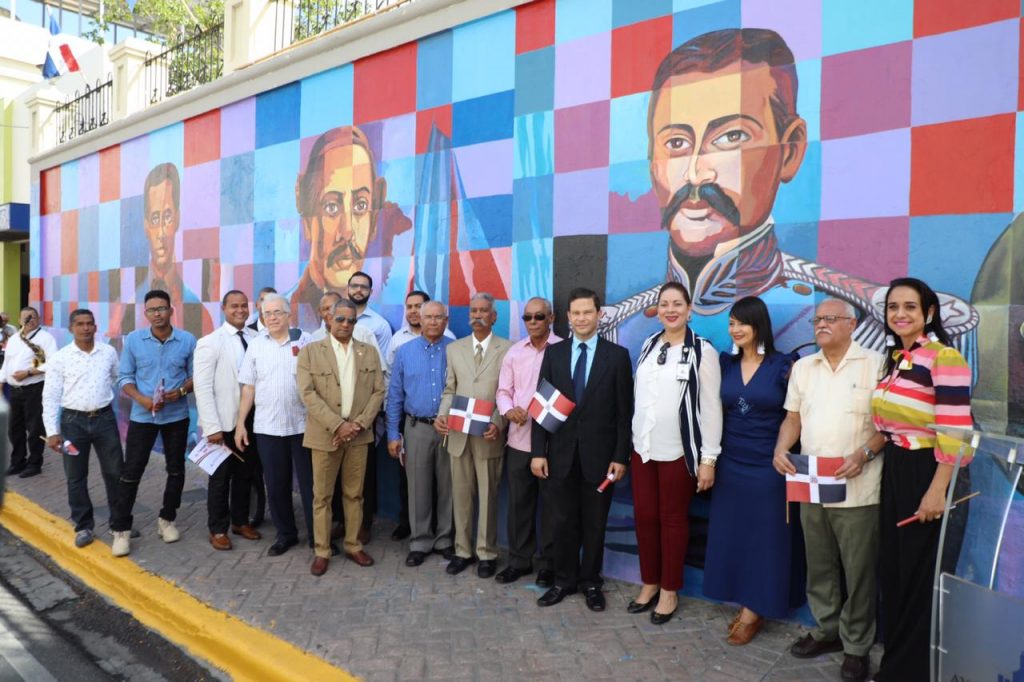 Santiago.-La Alcaldía de Santiago, dando continuidad al amplio programa “Murales de la Ciudad” develó este lunes el “Mural Patrio”, con motivo del natalicio del padre de la Patria, Matías Ramón Mella, ubicado en la calle Mella esquina Restauración y además reabrió el museo de la Logia Nuevo Mundo Número 5.
