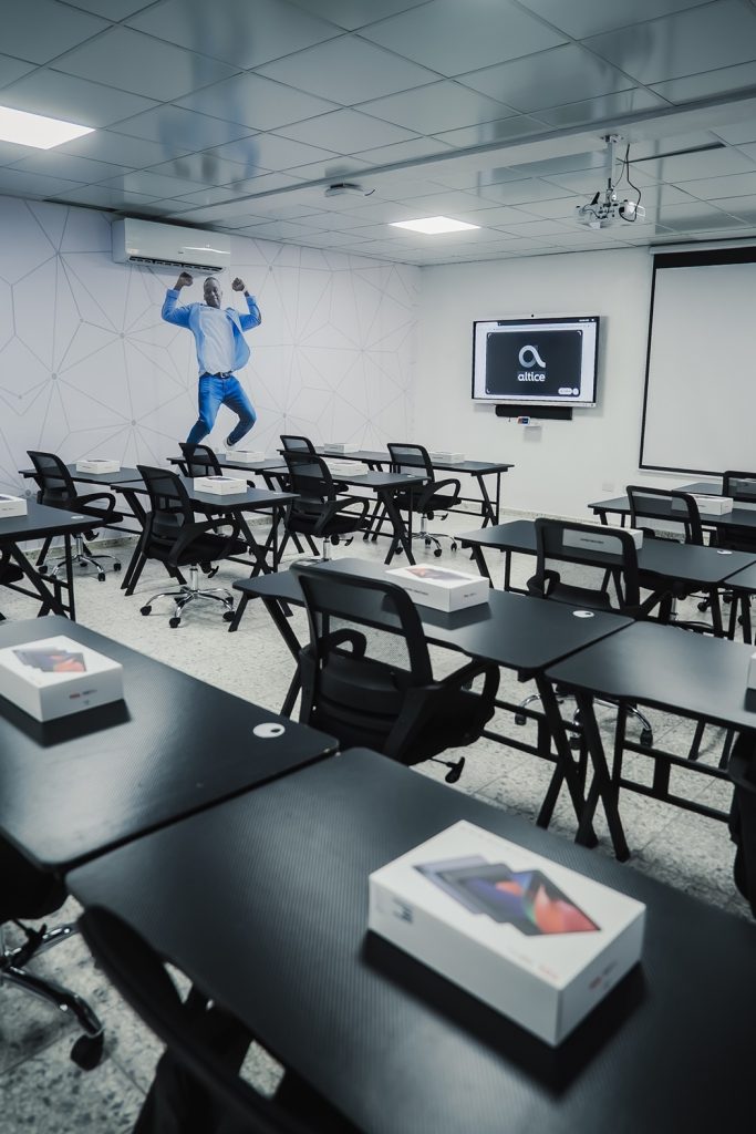 La ejecutiva detalló que el aula está equipada con Internet simétrico de 50 Mbps, red de fibra óptica, una moderna pantalla digital y equipo de sonido para facilitar la transmisión de clases en vivo. Además, Altice, en conjunto con el fabricante de equipos TCL, entregó una donación de 20 tabletas para el uso de los estudiantes.