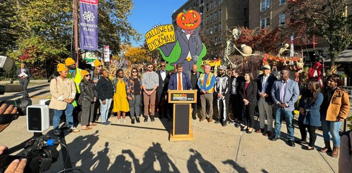 El senador estatal por el Alto Manhattan, Robert Jackson, declaró »el Ayuntamiento y el DOT lanzarán un hechizo de deleite sin automóviles, transformando a NYC en un paraíso para que nuestros jóvenes celebren, jueguen y crean recuerdos duraderos, dejemos que las calles cobren vida con ‘Trick-or-Streets’, donde prospera el espíritu de la comunidad«.