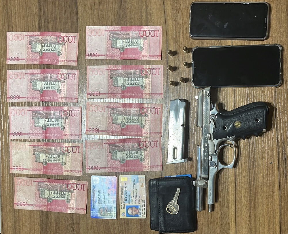 También se le ocupó la suma de nueve mil pesos en efectivo y dos celulares, que junto al arma de fuego serán enviados a la justicia para los fines correspondientes.