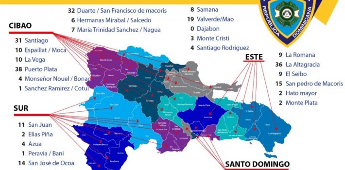 La mayor cantidad de apresados se registraron en Santo Domingo Este, con 114, Distrito Nacional, 66 y Santo Domingo Oeste, 49 mientras que Puerto Plata tuvo 38 detenidos.