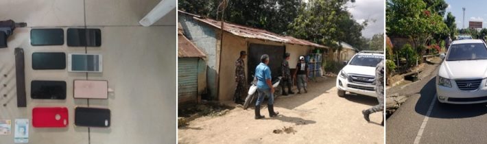 Una vez apresados, fueron conducidos al Cuartel General de Moca, donde se procedió a requisar el vehículo, en presencia de la fiscal Anatanay Frías, encontrándose en el mismo un arma de fuego marca Luger, modelo Tec.9, calibre 9mm., un cargador con veinte capsulas para la misma, cinco teléfonos celulares, una batería portátil, dos forros para celulares, una micro memoria marca SanDisk de 8GB, una tarjeta de vacunación a nombre de Lourdes Martínez y un carnet de identidad del Sindicato de Choferes Unidos Moca.