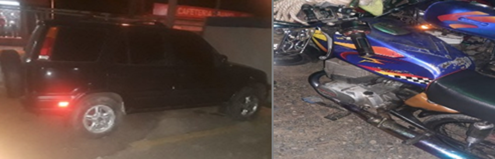 Tras la intervención de la uniformada, fue ocupada la yipeta marca CRV, color negro, y la motocicleta Suzuki, color azul, vehículos y detenidos que serán puestos a disposición del Ministerio Publico para los fines correspondientes.