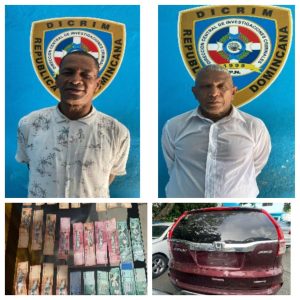 Los detenidos fueron identificados como Francisco Antonio Peña Martínez (56 años) e Isidoro Antonio Rodríguez Santos (59 años), quienes fueron interceptados a bordo de un jeep Honda CR-V color rojo vino, año 2015, placa G556388, frente a la Zona Franca de Puerto Plata.