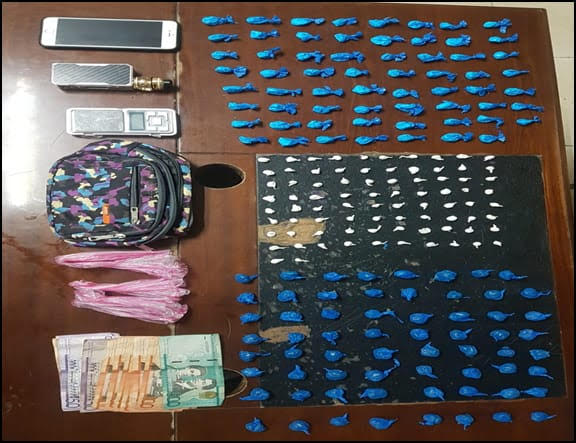 Laguna Salada, Valverde.-Un hombre fue apresado anoche en este municipio, con 209 porciones de presunta cocaína, marihuana y crack que llevaba dentro de un bulto tipo mariconera.
