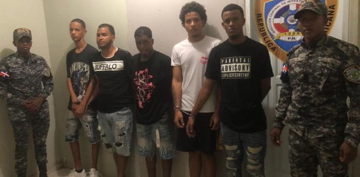 Los detenidos son los nombrados Rubén Darío Díaz Reyes, Leoner Muñoz Almonte, José Manuel Reyes, Graviel Rivera y Manolo Reyes Cueva, cuyas edades oscilan entre los 18 a 28 años, quienes abordaban el carro marca Hyundai modelo Sonata, color blanco, con placa de exhibición año 2017.