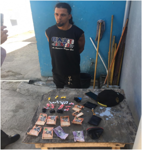 Winifer Noelrv Mármol Genao, de 28 años, residente en el sector Los Cayucos de Mao, fue sorprendido con las sustancias prohibidas por agentes preventivos, en la calle Ferson Madera de la ciudad de Mao.