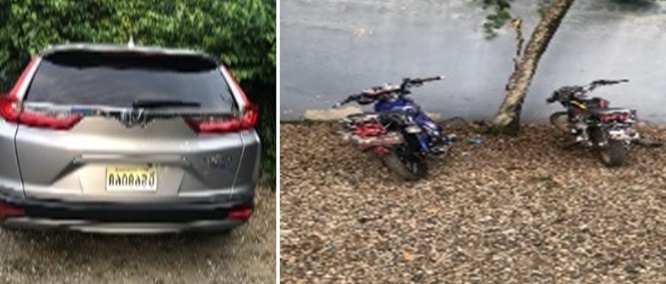 En el lugar, fueron ocupados un automóvil y dos motocicletas, dejados abandonados por otros individuos que lograron escapar, tan pronto notaron la presencia policial, hecho registrado este martes.