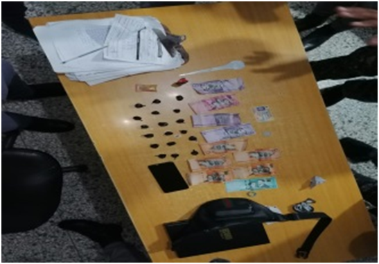 A uno de los prevenidos se les ocupó dinero en efectivo y un teléfono celular.