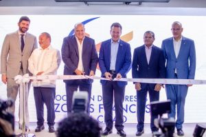 Corte de cinta que formaliza la remodelación de las oficinas de la Asociación de Empresas de Zonas Francas