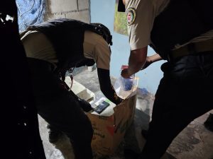 Durante el enfrentamiento, los individuos escaparon de la escena y dejaron abandonadas en el área un total de 86 porciones presumiblemente cocaína, con un peso aproximado de 1,029 gramos, 36 porciones de un vegetal presuntamente marihuana, con un peso de 280 gramos, una balanza y la suma de RD$350.00 pesos dominicanos.