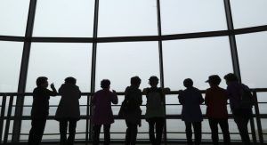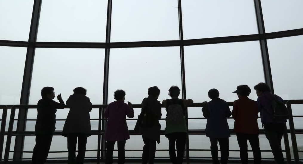 Visitors watch North Korea side from the unification observatory in Paju, South Korea, Tuesday, April 25, 2017. South Korea’s military said Tuesday that North Korea held major live-fire drills in an area around its eastern coastal town of Wonsan as it marked the anniversary of the founding of its military. (AP Photo/Lee Jin-man)