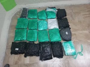 «En presencia de un fiscal se procedió abrir un bulto, donde incautaron varias fundas verdes y negras conteniendo en su interior los 20 paquetes del vegetal, con un peso preliminar de 25 libras», comunicó.