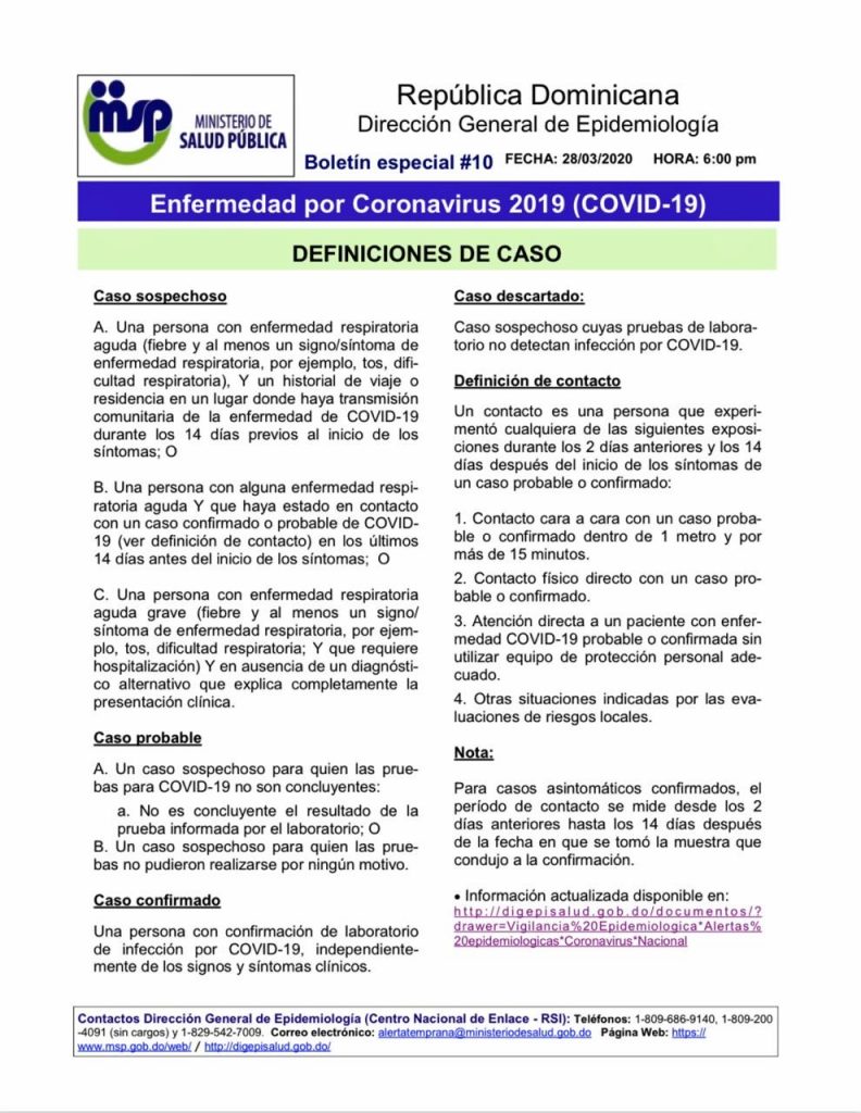 Sánchez Cárdenas dijo que se registraron 140 nuevos casos confirmados del virus y 11 nuevos fallecimientos uno en el Distrito Nacional, ocho en la provincia Duarte, uno en San Pedro de Macorís y uno en el gran Santo Domingo.