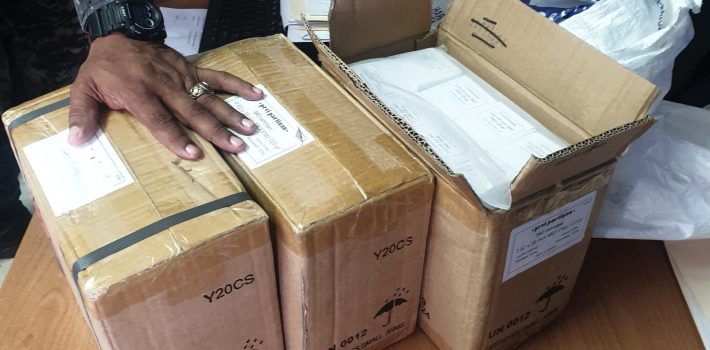 El procurador fiscal titular de Elías Piña, Ramil Cadete Pérez, dijo a través de un comunicado de prensa, que el paquete contiene municiones calibre 7.62 x 39 milímetros.