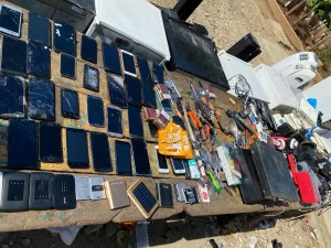 También se ocupó 1 juego electrónico Xbox, 60 cargadores, 6 pilas para celulares, 25 controles remotos para televisores, 25 cajitas de telecable, 39 bocinas, 5 amplificadores, 6 paquetes de cigarrillos y 200 navajas de afeitar.