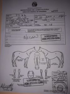 Luego de la analítica practicada, los especialistas determinaron que siete animales tenían anemia infecciosa equina, una enfermedad contagiosa que no tiene cura, certificación firmada por el médico veterinario Reynaldo Oscar Ogando y que fue remitida al Ayuntamiento de Santiago y en la que se le comunicaba la obligatoriedad de sacrificarlos.