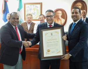 El pergamino de reconocimiento entregado por el alcalde Odalis Vega, destaca que como principal funcionario del Ministerio de Administración Pública (MAP), Ventura Camejo “ha mostrado su entrega al trabajo a través de los años, implicado activamente en el liderazgo político y en el desarrollo de importantes proyectos, a los fines de promover la profesionalización y la institucionalidad en la República Dominicana”.