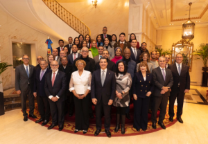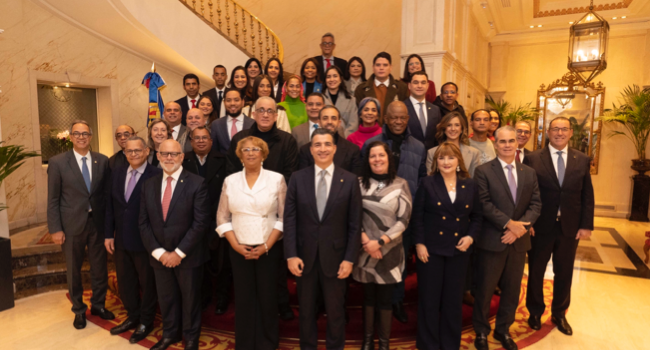 El señor Paniagua estuvo acompañado por el vicepresidente ejecutivo senior de Negocios Nacionales e Internacionales, señor René Grullón F.; la señora Antonia Antón de Hernández, vicepresidente ejecutiva senior de Gestión Humana, Transformación Cultural, Administración de Créditos y Cumplimiento; el vicepresidente ejecutivo de Comunicaciones Corporativas, Reputación y Banca Responsable, señor José Mármol; el vicepresidente del Área de Negocios Turísticos, señor Juan Manuel Martín de Oliva; la vicepresidente del Área de Relaciones Corporativas y Banca Responsable, señora Mariel Bera; y el vicepresidente del Área de Ingeniería, José Hernández Caamaño.