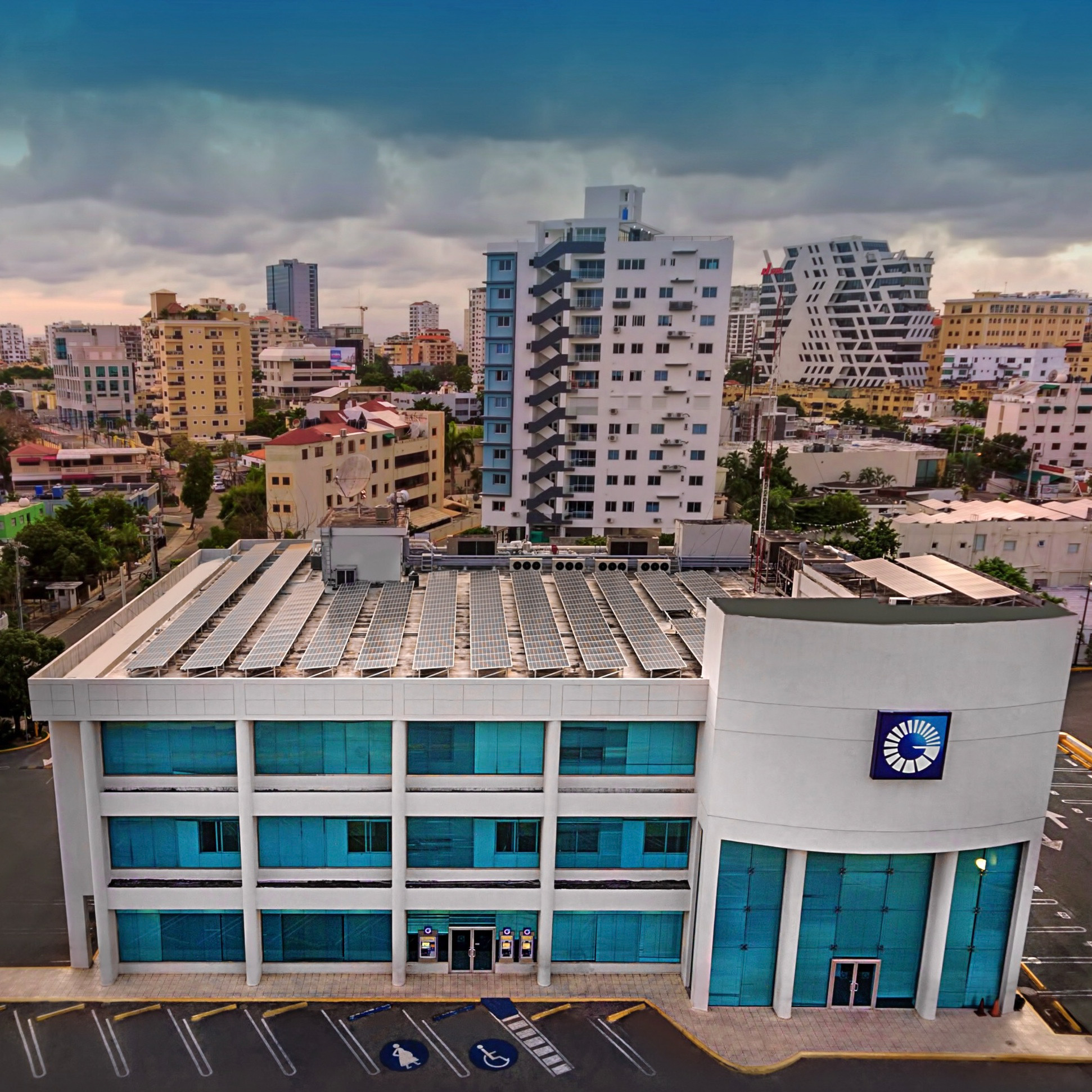 La sucursal ubicada en la localidad de Juan Dolio, provincia San Pedro de Macorís, fue la primera en integrar esta red de oficinas solares hace una década. El proyecto ha ido creciendo en cantidad de oficinas y en alcance, ya que su desarrollo ha implicado la creación de un completo centro de gestión y eficiencia energética, localizado en la Torre Popular, que monitorea la producción de los paneles, que operan en la modalidad bidireccional, lo que significa que el banco consume una parte de su producción de energía limpia e inyecta al sistema eléctrico interconectado la que no consume, además de medir también la eficiencia de sus equipos electromecánicos, auditando la factura eléctrica y las emisiones a la atmósfera en tiempo real.