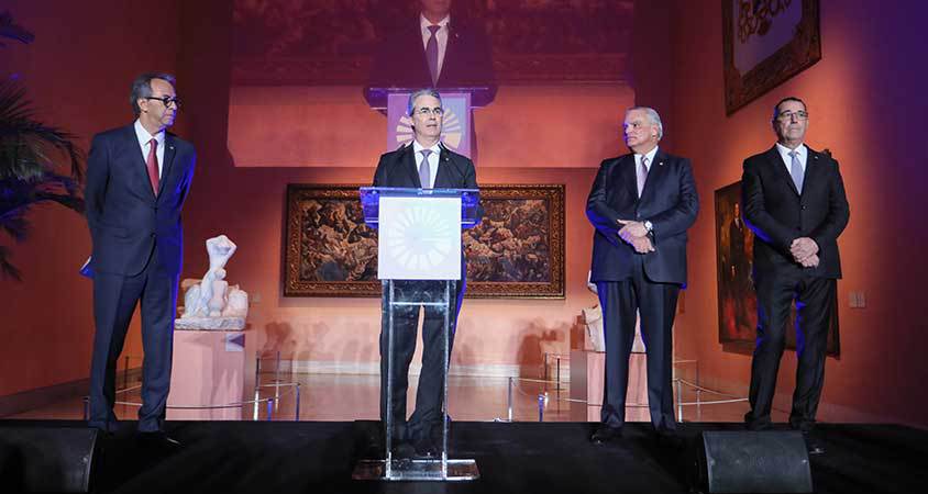 El museo Thyssen Bornemisza, importante pinacoteca y centro cultural de fama mundial, que alberga una de las colecciones de pintura más importantes del mundo, acogió a más de 400 invitados, quienes departieron con cordialidad, participaron en un brindis y degustaron una exquisita selección de vinos españoles y espumantes, amenizados por las interpretaciones musicales de un conjunto de latin jazz, cortesía del Banco Popular.