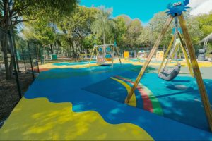 Asimismo, el área cuenta con infraestructura que garantiza accesibilidad universal, incluyendo superficies de caucho para mayor seguridad, aceras tipo rampa, iluminación LED eficiente, señalización informativa y mobiliario urbano, como mesas de picnic y espacios destinados a terapias sensoriales.