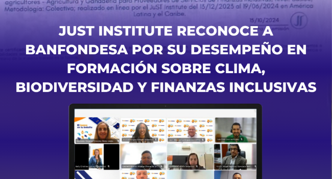 BANFONDESA recibe certificación del JuST Institute en clima, biodiversidad y finanzas inclusivas