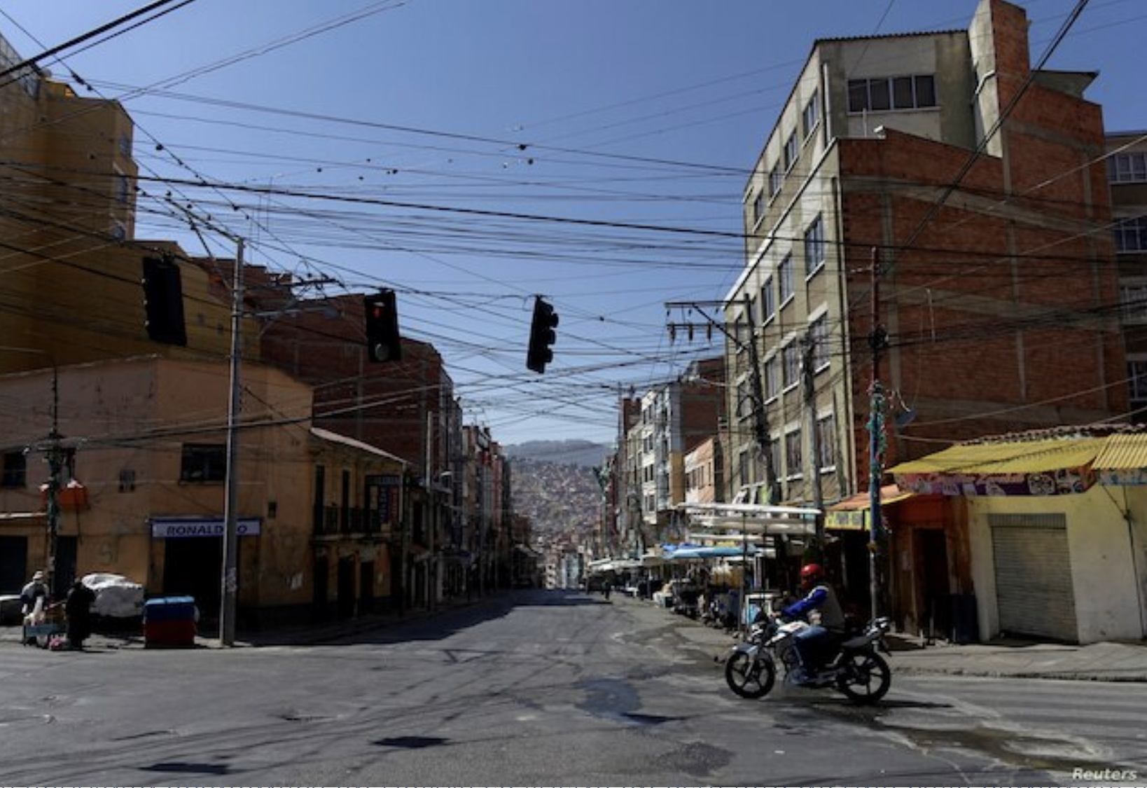 La poca actividad económica en Bolivia se ilustra en esta foto de una calle comercial