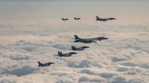 El modelo B-1B puede llevar una gran cantidad de armas convencionales. En otras ocasiones, Corea del Norte ha descrito el despliegue del bombardero como una prueba de la hostilidad estadounidense, y ha reaccionado con pruebas de misiles.