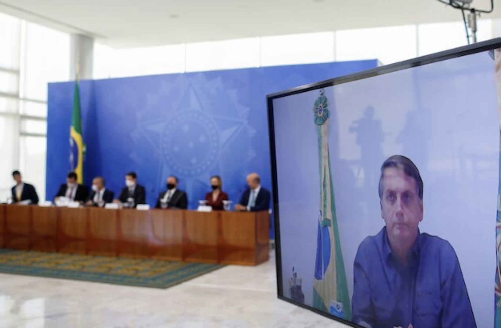 El presidente de Brasil, Jair Bolsonaro, participa virtualmente de un acto de gobierno en Brasilia