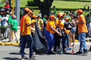 Santiago.-La gestión municipal que encabeza el alcalde Abel Martínez, se preparó para dar respuesta a la basura producida en la ruta diseñada para la denominada marcha verde, la cual recorrió importantes vías de la ciudad de Santiago, para que hoy mismo la ciudad recobrara su limpieza habitual.