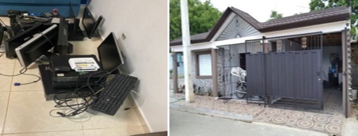Esperanza, Valverde.-Equipos electrónicos, tarjetas y recibos de retiro de instituciones bancarias a nombre de diferentes personas, fueron incautados la tarde de este martes en el municipio de Esperanza, tras ser allanada la residencia de un hombre buscado activamente por cometer delitos, a través de las redes sociales.