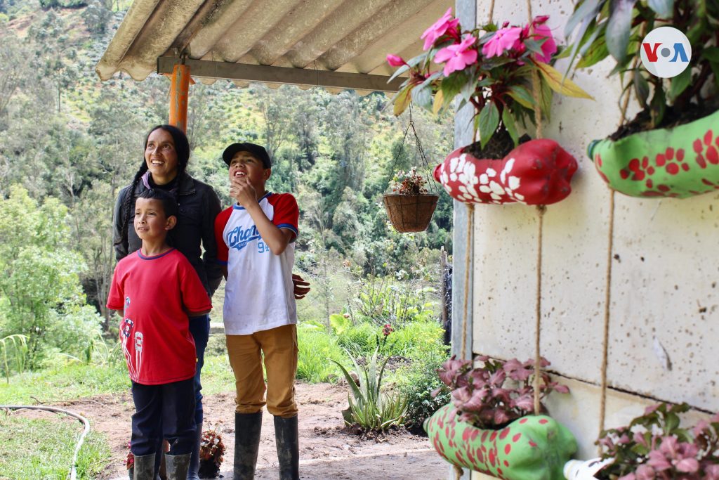 BOGOTÁ – COLOMBIA, (VOA),- Nubia Gaona y sus dos hijos jamás imaginaron que su historia de vida, en medio de cerdos, gallinas, sembrados de frutas y aromáticas, y con la sencillez que define el campo, traspasara las verdes montañas y llegara hasta la pantalla de un celular, tableta o computador.