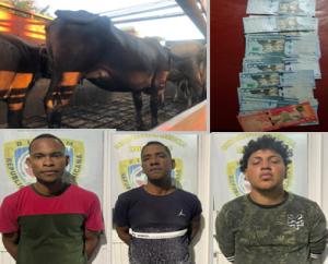 Laguna Salada, Valverde.-Miembros de investigaciones criminales (DICRIM) de la Dirección Regional Noroeste de la Policía Nacional capturaron este lunes, en este municipio, a tres personas, presuntamente integrantes de una banda de cuatreros, que comercializaban con reses robadas en fincas ganaderas de la región.